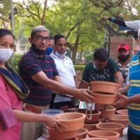 Every year during the summer, water pots are distributed free of cost by the organization to save the thirsty animals and birds.